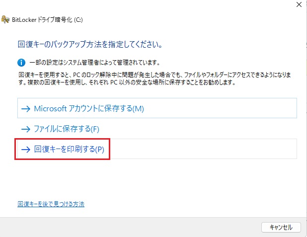 でも、これは「双刃の剣」で、今回の様な起動トラブルでは、事前に何らかの方法で「回復キーを保存しておかないといけません」。